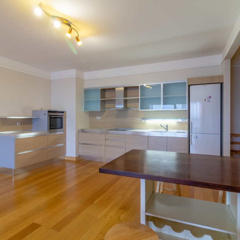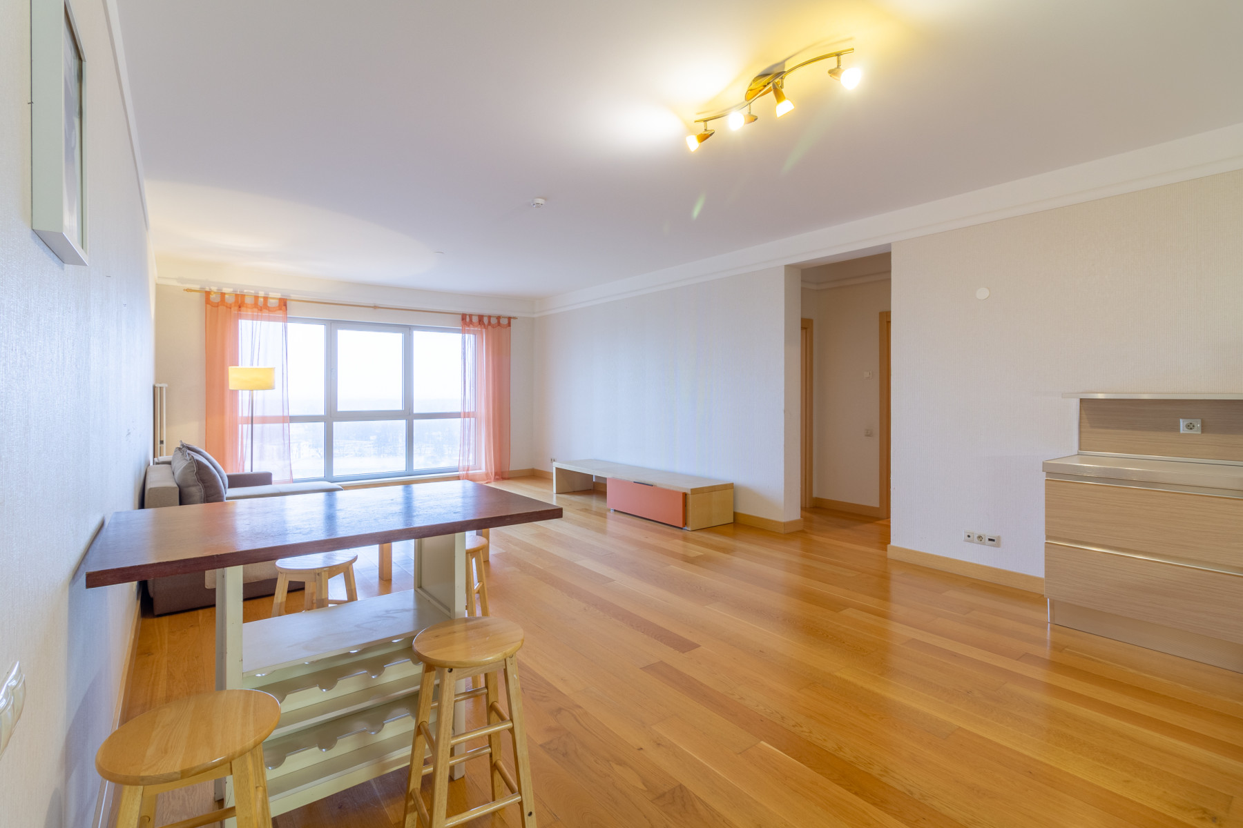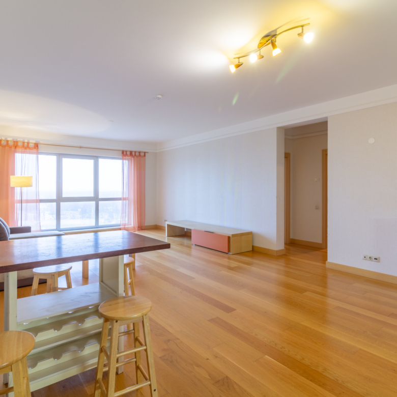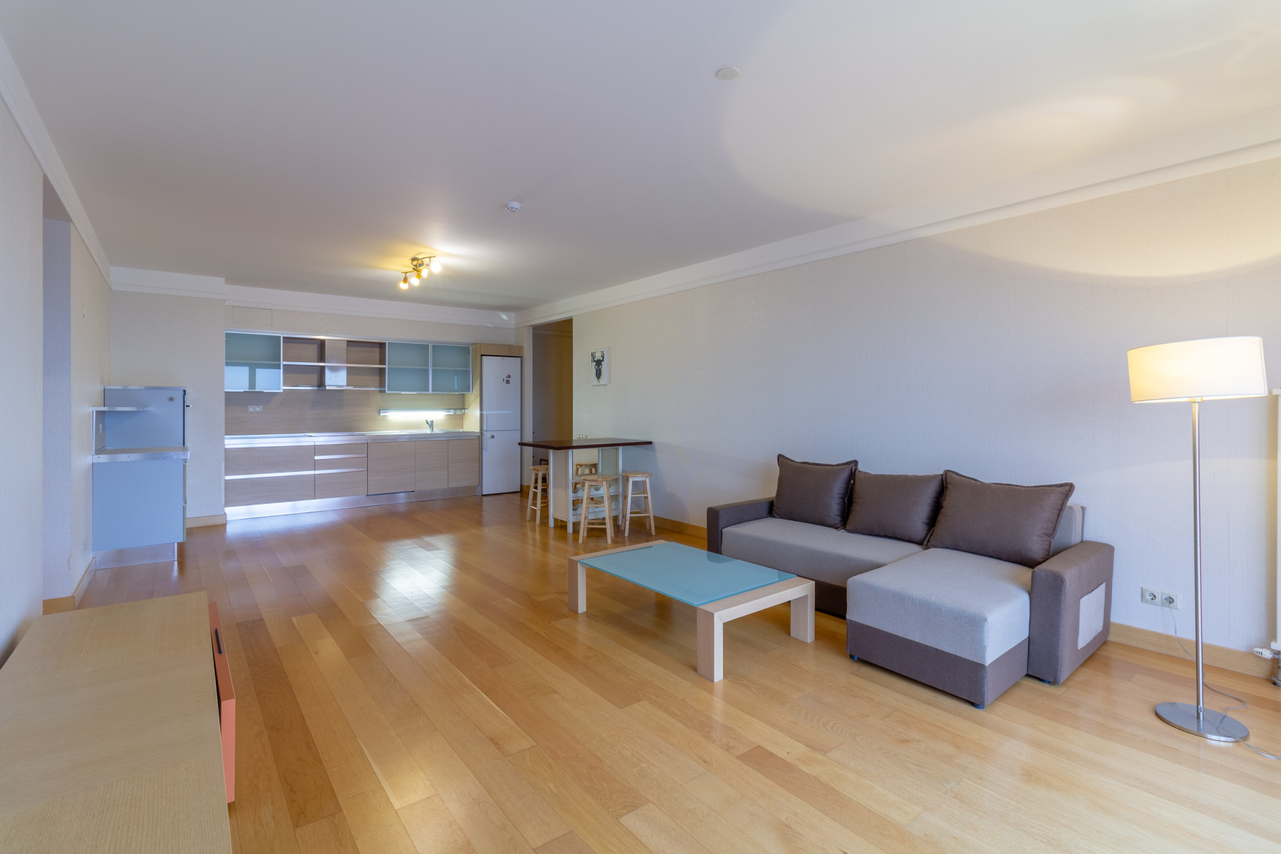 Trīsistabu dzīvoklis projektā Panorama Plaza. Dzīvoklis ar plašu viesistabu, kas apvienota ar virtuvi, divām guļamistabām un divām vannasistabām. Dzīvoklis aprīkots ar iebūvētu virtuvi – elektriskā cepeškrāsns, elektriskā plīts virsma, trauku mazgājamā mašīna un ledusskapis. Veļasmašīna novietota vienā no vannasistabām. Guļamistabās ir divguļamās gultas un drēbju skapji. Viesistabā ir pusdienu galds ar četriem krēsliem, dīvāns un žurnālgaldiņš. Mājā ir četri lifti, diennakts apsardze un videonovērošana. Papildus iespējams nomāt pazemes autostāvvietu. Ērta satiksme uz lidostu un pilsētas centru.